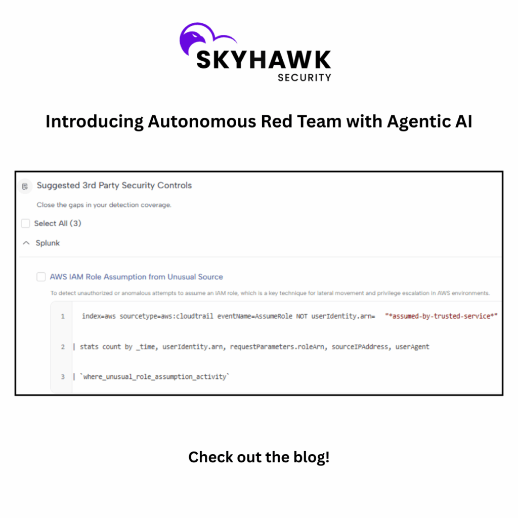 Skyhawk Security announces Security Control Validation for 3rd party tools where the underlying technology leverages Agentic AI framework. It is an expansion of our cloud-native Breach and Attack Simulation (BAS) and validates the entire cloud security stack to determine if existing detection and enforcement controls would catch or prevent threats to crown-jewel assets. This provides […]