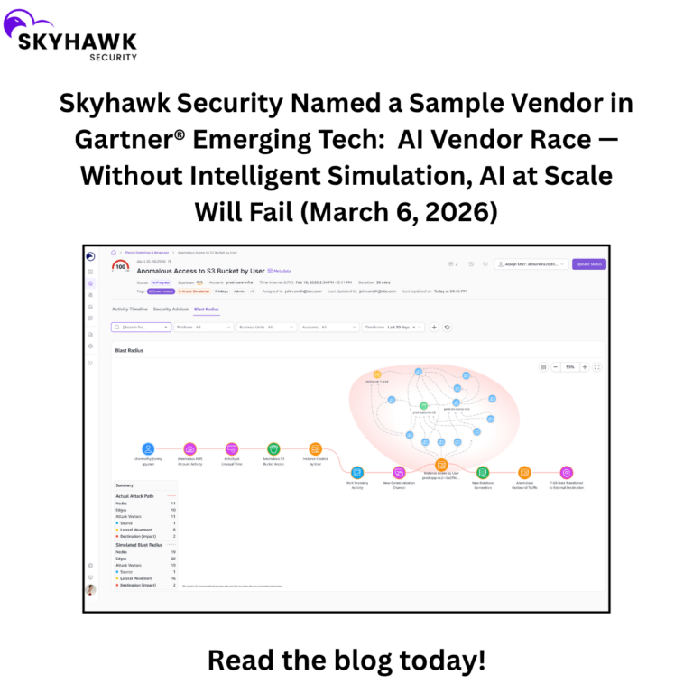 Skyhawk Security introduced Intelligent Simulation in our platform when we announced the AI-based Purple Team in December 2023. This AI-based platform leverages simulation twins to create virtual replicas of your cloud environment – the architecture, configuration, and cloud security controls.